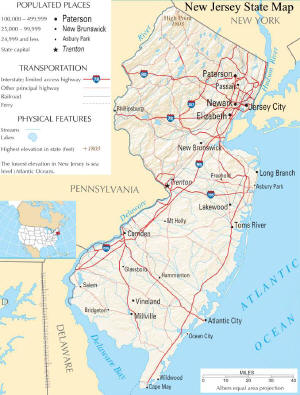 The electronic map of New Jersey State that is located below is provided by Google Maps. You can "grab" the New Jersey State map and move it around to re-centre the map. You can change between standard map view and satellite map view by clicking the small square on the bottom left hand corner of the map. Satellite map view utilizes orbiting satellite or aerial high resolution photography to display images of the map location to street level detail (really quite amazing). Standard map view shows a traditional street map (also known as a road map). You can use the zoom buttons on the bottom right hand side of the map to zoom in or out to street level detail. We have maps for most towns and cities in the US, so click on the United States Maps link to see more American online maps.