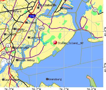 This map shows the Borough of Staten Island in the City of New York. You can "grab" the Staten Island map and move it around to re-centre the map. You can change between standard map view and satellite map view. You can also use the zoom bar to zoom in or out. You can use the search form above the map to search for any location in the world.