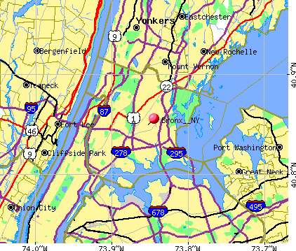 This map shows the Borough of The Bronx in the City of New York. You can "grab" the Bronx map and move it around to re-centre the map. You can change between standard map view and satellite map view. You can also use the zoom bar to zoom in or out. You can use the search form above the map to search for any location in the world.