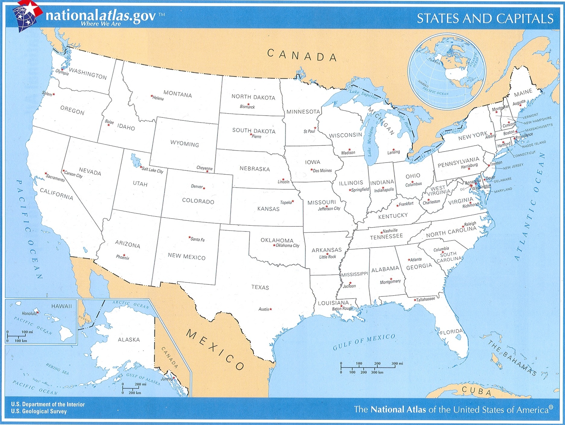 Below you will find a large map of the United States showing all States and their capital cities. This is a large image file. Our website format reduces the display size for uniformity.