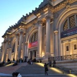 The Fifth Avenue facade of The Metropolitan Museum of Art in New York City at twilight.