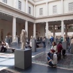 People in the Carroll and Milton Petrie European Sculpture Court.