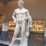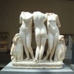 A Statue of Dionysos leaning on a female figure (Hope Dionysos) housed in the Greek and Roman galleries.