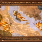 Image of the foyer or entrance to the Rose Main Reading Room and the beautiful mural on the ceiling.