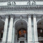 The New York Public Library main branch facade (close up in detail) along Fifth Avenue between 40th and 42nd Streets.