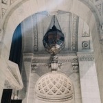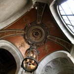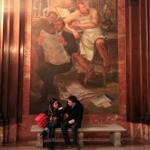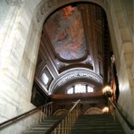 This photograph was taken on a staircase leading up to the McGraw Rotunda. The Mural on the ceiling depicts Prometheus.
