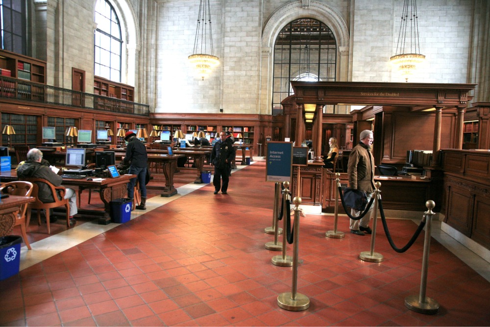 Photograph of the Bill Blass Public Catalog Room in the New York Public Library main branch. The Catalog Room was renamed in 1994 for fashion designer Bill Blass, who gave $10 million to the NYPL.