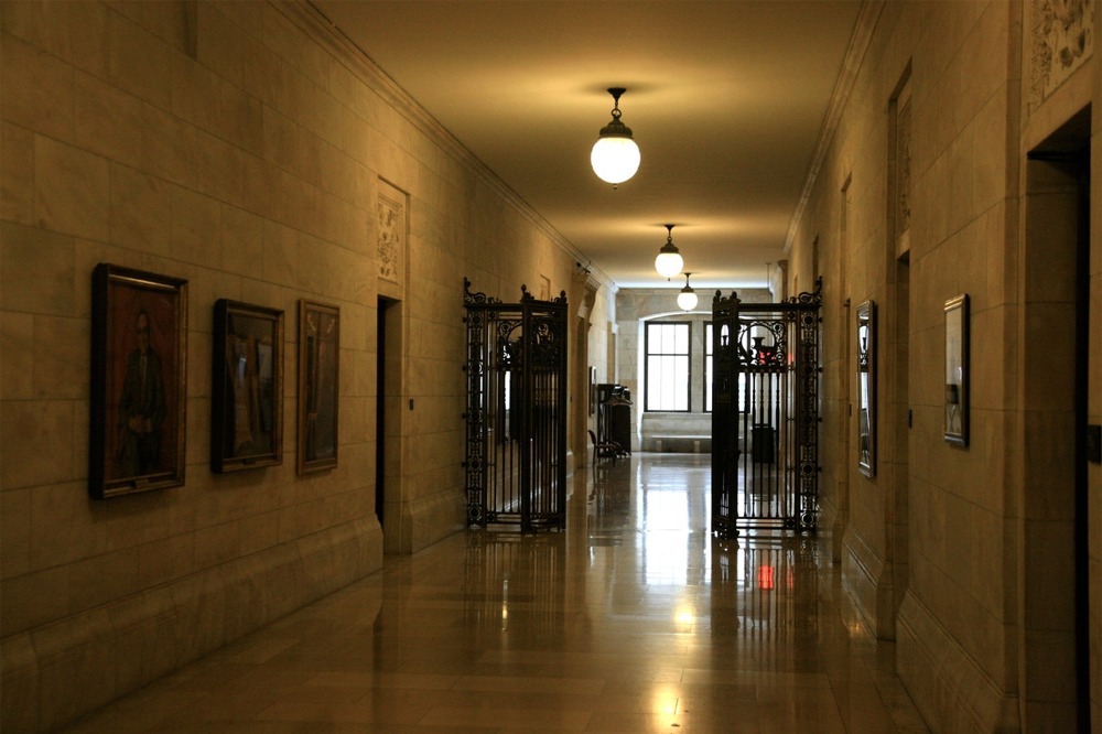 A hallway photograph in the New York Public Library main branch. The image also shows the elaborate Beaux-Arts features used in the library's design and construction.