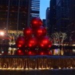 The Avenue of the Americas Fountain is alive with wonderful Christmas decorations, the red balls become a beacon of festive cheer in the heart of the city.