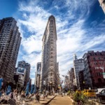 The sun is blazing down on the Flatiron Building in Manhattan, New York City, setting the scene for this wonderful photograph.