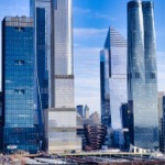 The Vessel stood among the skyscrapers of the magnificent Hudson Yards redevelopment on the west side of Manhattan. The glass towers rose up around it piercing the beautiful azure sky.