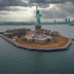 The sky opened up, revealing an unforgettable sight. The majestic Statue of Liberty towered above Fort Wood, with a tumultuous backdrop of ominous clouds lurking in the horizon.