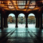 The Bethesda Terrace structure is a breathtaking sight, the ceiling made of glimmering tiles that shine with a bronze hue under the accent lighting.