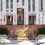 Prometheus, the titan, the giant of Greek mythology, was standing boldly in the middle of the Rockefeller Center, the golden statue, surrounded by a fountain.