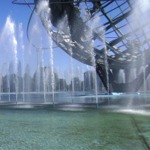 The Unisphere loomed large in the center of Flushing Meadows-Corona Park, surrounded by the shimmering waters of the pool. The sun shone brightly above and bathed the sculpture in a glowing light.