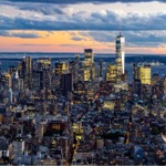 The Manhattan skyline was a majestic sight, stretching out far and wide in the early morning light. At the center of it all was the One World Trade Center, gleaming in its grandeur.