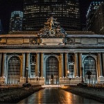 The epic 42nd Street facade of Grand Central Terminal in Manhattan shines, the Beaux-Arts style a masterpiece of classic beauty. At its apex is the Glory of Commerce.